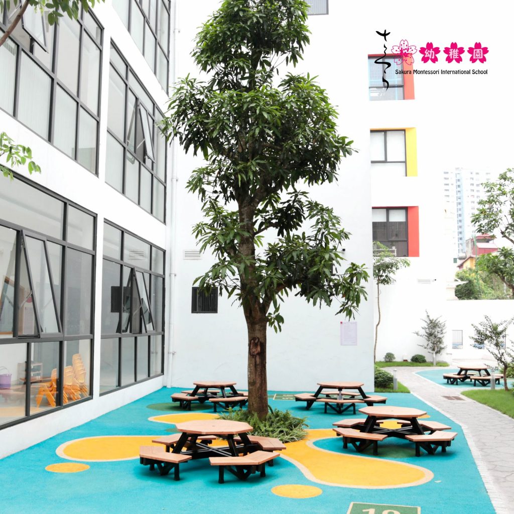 Nằm trong hệ thống khu liên cấp mầm non, tiểu học và phổ thông cơ sở, phổ thông trung học với diện tích lên đến 8.000m2, trường mầm non Sakura Montessori hấp dẫn ánh nhìn từ bạn ngay ở lần đầu tiên bởi không gian rộng lớn, ngập tràn sức sống của cỏ cây, hoa lá 4 mùa.